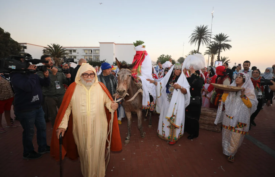 ويجسد عرض “تنڭيفت” تقاليد العرس الأمازيغي الأصيل، ترافقه فرق فنية تراثية تمثل التنوع الثقافي لجهة سوس ماسة.