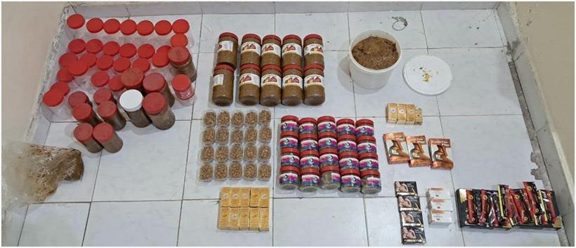 وأسفرت عملية التفتيش عن حجز 19 كيلوغرامًا من هذه المواد، إلى جانب مجموعة من العبوات البلاستيكية المستعملة في تعبئتها، بالإضافة إلى 1000 قرص طبي مهرب يستعمل أيضًا لزيادة الوزن.
