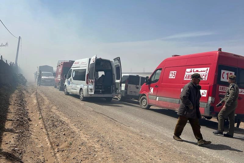 أصيب ما لا يقل عن 25 عاملة زراعية بجروح متفاوتة الخطورة جراء حادثة سير وقعت اليوم السبت على الطريق المؤدي إلى محطة تحلية مياه البحر بالدويرة، في إقليم اشتوكة آيت باها، إثر اصطدام قوي بين حافلة وسيارتين نفعيتين كانتا تقلان عاملات وعمالًا زراعيين.