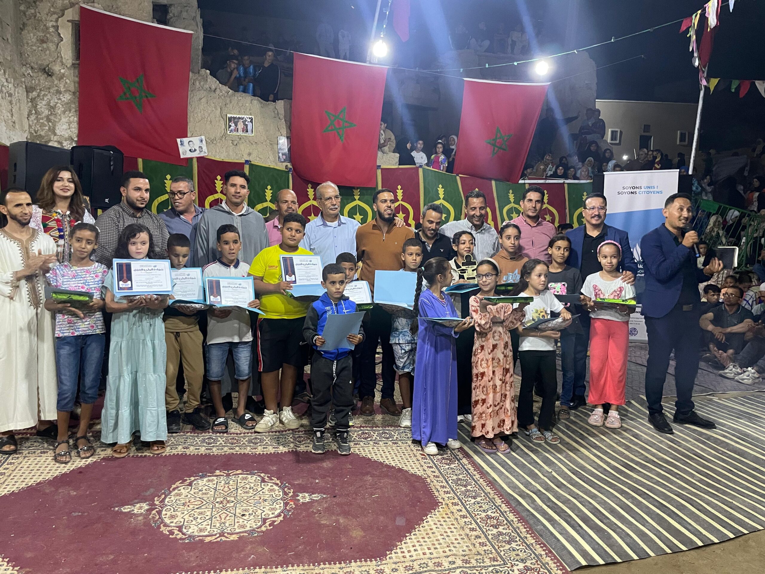 الحفل، الذي مرّ في أجواء راقية وحضور وازن، شهد تكريم التلميذات والتلاميذ المتفوقين دراسيا من مختلف المستويات التعليمية، من الابتدائي إلى البكالوريا، عبر تسليم جوائز وشهادات تقديرية، كما تم تكريم شخصيات محلية ساهمت بعطائها وخبرتها في دعم الناشئة وتعزيز قيم المبادرة والعمل المشترك.