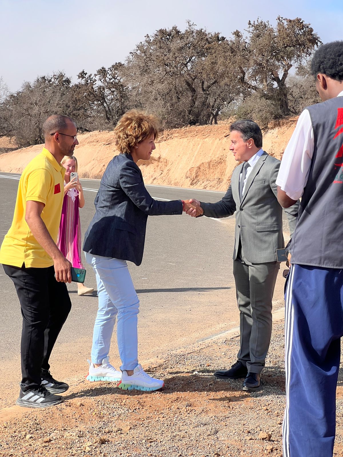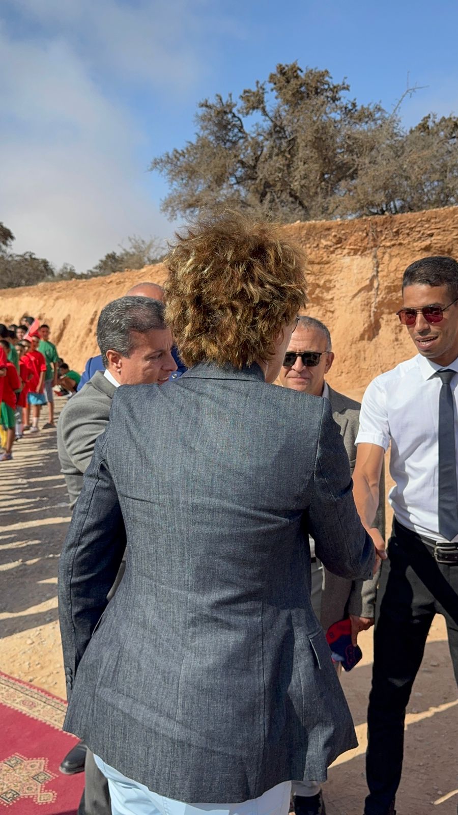 وعرفت هذه المحطة أجواء احتفالية مفعمة بالروح الوطنية، حيث كان في استقبال الوفد الرياضي كل من رئيس دائرة أكادير الأطلسية، وقائد قيادة تامري وخليفته رئيس ملحقة إمسوان، ورئيس الجماعة الترابية إمسوان ونائبه الأول، إلى جانب عدد من الشخصيات المحلية وممثلي فعاليات المجتمع المدني وساكنة المنطقة التي تفاعلت بكثافة مع هذا الحدث الوطني الكبير.