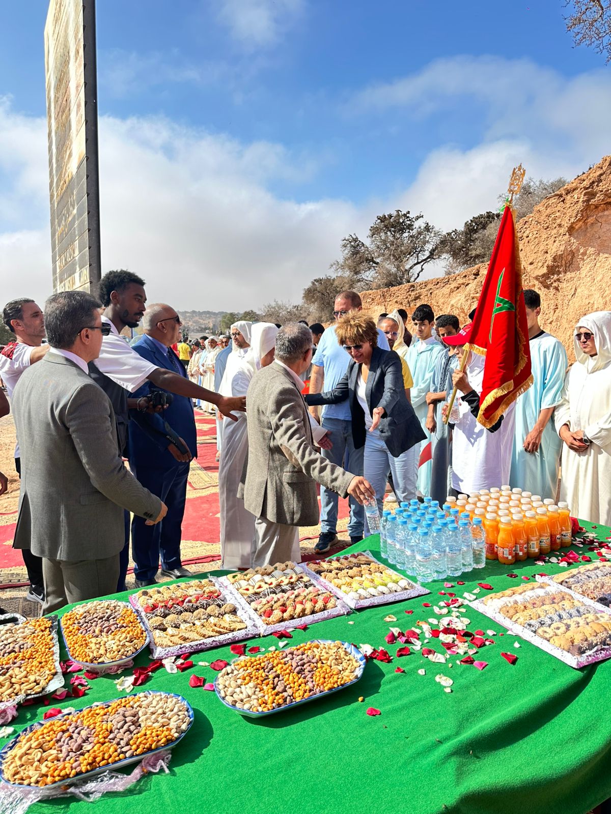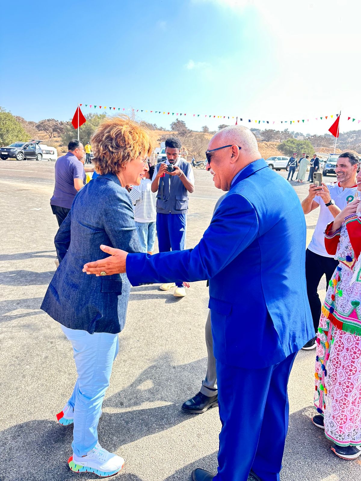 وشهدت الفعاليات مشاركة البطلة الأولمبية حسناء بنحسي، التي كلفت بحمل العلم الوطني المنطلق من مدينة الصويرة في اتجاه مدينة أكادير، وسط موكب رمزي بهيج شارك فيه الأطفال والنساء والشباب، في لوحة وطنية جسدت معاني الانتماء والاعتزاز بملاحم الوطن الخالدة.