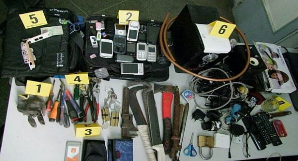 وذكرت مصادر الجريدة، أن عملية التفتيش التي أخضعت لها الغرفة التي يكتريها الموقوف بحي الداخلة، أسفرت عن حجز عدد هائل من المسروقات، عبارة عن هواتف نقالة وحواسيب، أغطية وأفرشة، أحذية وألبسة نسائية ورجالية، حافظات للأوراق وأخرى للحواسيب، شواهد جامعية أصلية في ملك الأغيار، بالإضافة إلى الأدوات التي يستعملها في مداهمة المنازل والغرف منها مفكات براغي ومعدات الحفر والضغط وأسلحة بيضاء كبيرة الحجم.