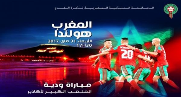 أفادت الجامعة الملكية المغربية لكرة القدم، اليوم، بأنها وضعت تذاكر المباراة الودية التي ستجمع المنتخب الوطني الأول ومنتخب هولندا؛ يوم 31 ماي 2017 بالملعب الكبير لأكادير؛ للبيع عن طريق الأنترنيت عبر بوابتها الرسمية ابتداء من يومه الثلاثاء 16 ماي 2017.
