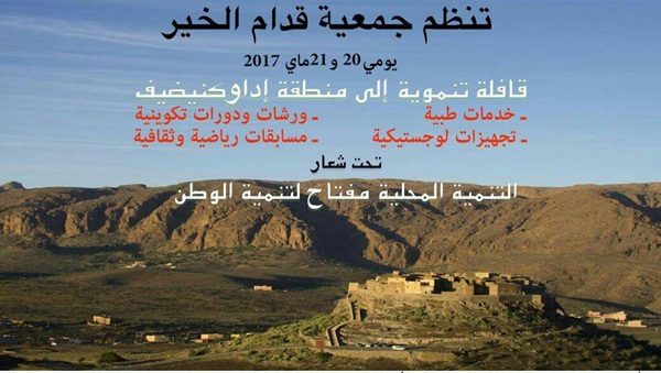 ستحل، يوم السبت 20 ماي الجاري، بالجماعة الترابية إذاوكنيضيف الواقعة في الدائرة الجبلية لإقليم اشتوكة أيت باها ( جهة سوس ماسة )، قافلة تنموية كبرى، شعارها “التنمية المحلية مفتاح لتنمية الوطن”.