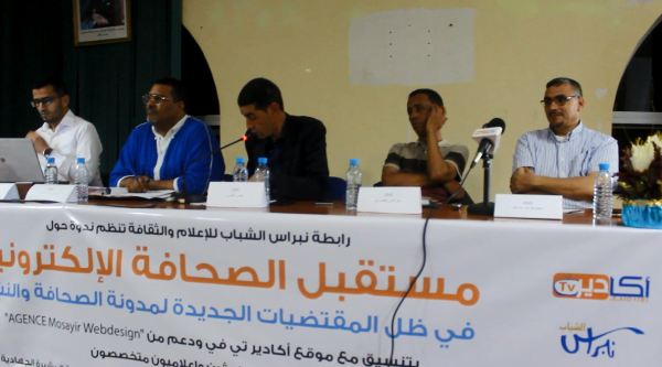 عرف مقر بلدية الدشيرة الجهادية يوم الإثنين 19 يونيو الجاري الموافق لـ 24 رمضان ندوة سلطت الضوء على مستقبل الصحافة الإلكترونية في ظل المقتضيات الجديدة لمدونة الصحافة والنشر” من تنظيم “رابطة نبراس الشباب للإعلام والثقافة” بتنسيق مع موقع “أكادير تيفي”، هذا اللقاء الذي أطره باحثين وإعلاميين متخصصين في المجال الإعلامي، عرف حضور عدد هام من الصحفيين والمهتمين بالشأن الإعلامي.
