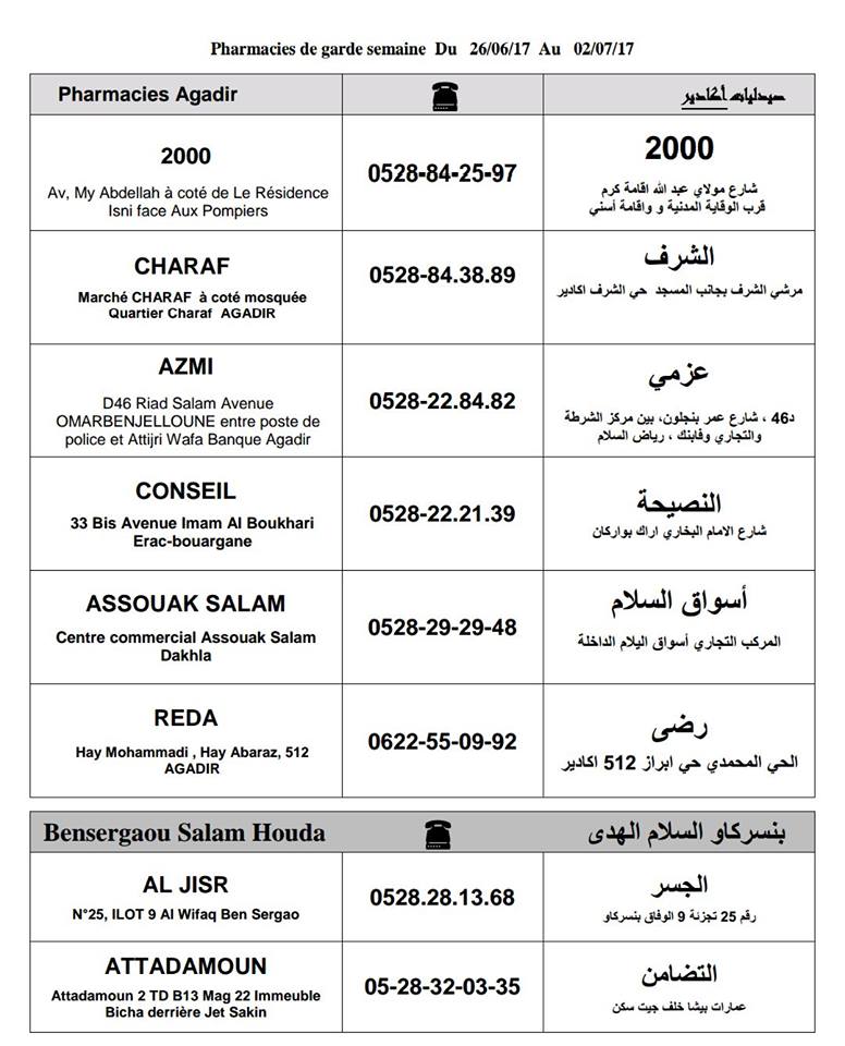إليكم صيدليات الحراسة خلال العيد وبقية أيام هذا الأسبوع بمدينة أكادير ونواحيها من 26 إلى 02 يوليوز 2017