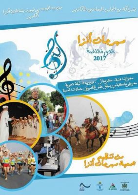 وكذا بعد النجاح الكبير للدورة الأولى لمهرجان أنزا والتي تميزت بأنخراط جميع المكونات والفعاليات الثقافية والمؤسسات على المستوى المحلي، الت جمعية مهرجان أنزا أن تضاعف الجهود وتستثمر الطاقات والكفاءات من أجل انفتاح حقيقي أوسع في هاته الدورة الثانية التي ستنظم ما بين 22 الى 26 يوليوز 2017 ، تحت شعار ” ملتقى الاطلسين اصالة تراث وفن ” ، وأن تلبسه ثوبا مزخرفة ألوانه ومتعددة فنونه وذلك لما رأيناه من تعطش للفاعلين والمهتمين والمتخصصين في هذا الميدان فضلا عن الساكنة التي لمسنا فيها عشقا منقطع النظير للفرجة الهادفة ، وستتضمن هذه الدورة برنامجا غنيا ومتنوعا يلامس الثقافة والفن في جميع تمظهراته من أورقة للفنون التشكيلية وندوات ، ولقاءات، و ورشات تكوينية ، أمسية شعرية وفنية ، فروسية ، فنون الشارع ، استعراضات وفروسية. وبهذا نكون قد منحنا لمدينتنا أنزا خاصة وأكادير عامة ولجهة سوس ماسة ذلك البعد الذي تستحقه اشعاعيا من خلال مهرجان أنزا حتى تغدو فضاءا للتقارب والتسامح والحوار.