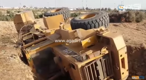 إنقلاب جرافة كبيرة قرب ملعب “أدرار” بأكادير