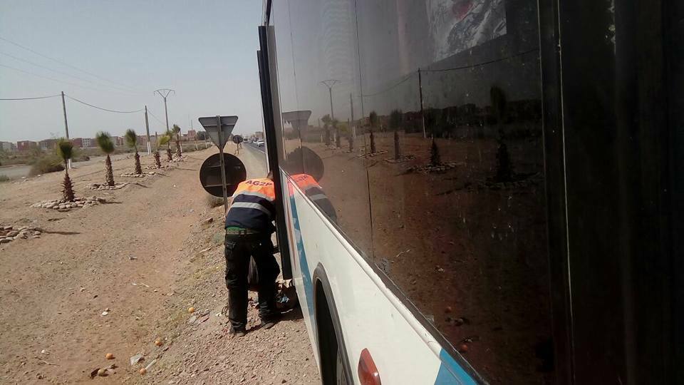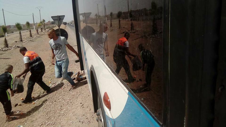 بالصور .. مراقبو حافلة “ألزا” يعتدون على شيخ ويرمونه في قارعة الطريق باشتوكة