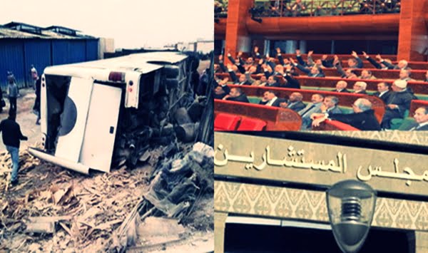 رفض مجلس المستشارين أمس الثلاثاء، قراءة الفاتحة ترحما على ضحايا حادثة انقلاب حافلة لنقل العاملات في وحدة لتصبير السمك بمنطقة أنزا شمال أكادير، والتي أودت بحياة سيدتين وإصابة 26 أخريات.