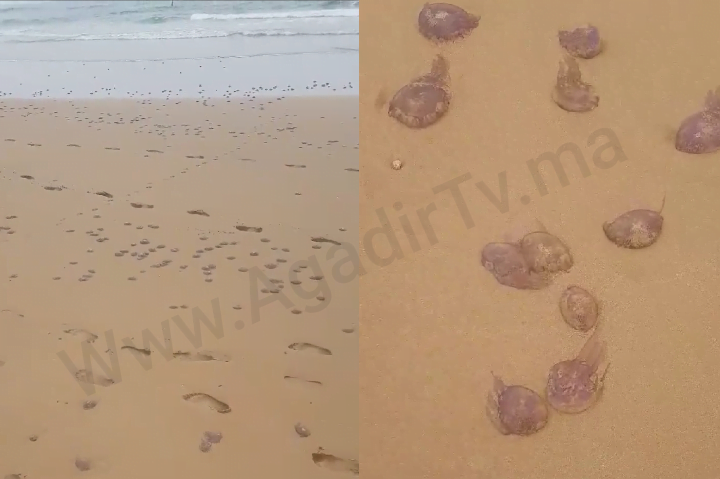 شهد شاطي امسوان ضواحي أكادير، وفق مصادر “أكادير تيفي”، صبيحة اليوم الخميس انتشار كثيف لقناديل البحر حمراء اللون، بالتزامن مع الضباب الذي خيم على المنطقة والأجواء المشمسة التي تعيشها.