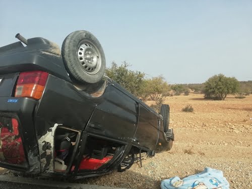 ذكرت مصادر محلية أن حادثة سير خطيرة وقعت صباح الأحد، حيث انقلبت سيارة خفيفة بالطريق الوطنية رقم 1 الرابطة بين مدينتي أكادير والصويرة وبالضبط بالقرب من منطقة “إدوتغما”.