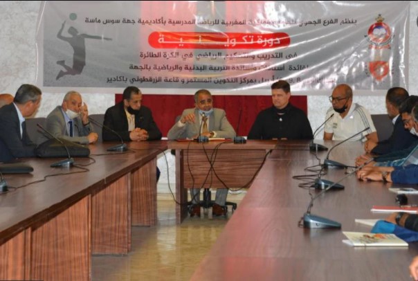 تم مؤخرا بمركز التكوين المستمر بأكادير، تنظيم دورة تكوينية في التدريب والتحكيم الرياضي في كرة الطائرة لفائدة استاذات وأساتذة التربية البدنية والرياضة المدرسية على مستوى جهة سوس ماسة.