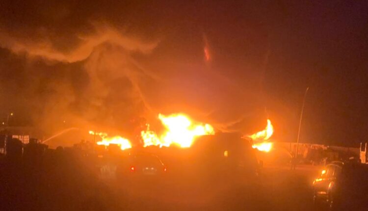 شب حريق مهول في مشروع توسعة سوق الجملة للخضر والفواكه بإنزكان قبيل قليل من ليلة اليوم الثلاثاء 25 ماي 2021.