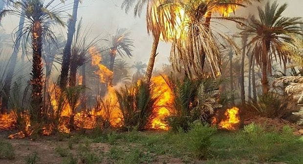 وتسببت النيران في اتلاف أزيد من الفي نخلة (2000).