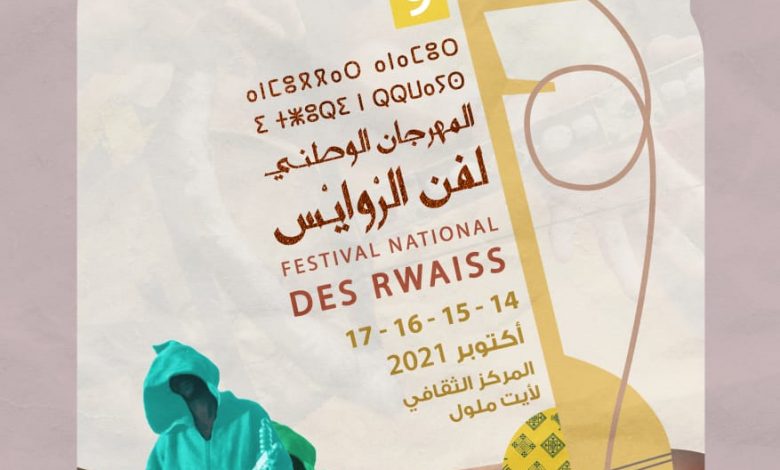 تنظم وزارة الشباب و الثقافة والتواصل – قطاع الثقافة، المهرجان الوطني لفن الروايس، في دورته التاسعة، تحت شعار ” فن الروايس، تراث متجذر وفن متجدد”، وذلك خلال الفترة الممتدة من 14 إلى 17 أكتوبر 2021 بالمركز الثقافي لأيت ملول.