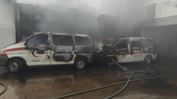 وأسفر الحريق عن احتراق سيارتين للإسعاف وإتلاف عدد من التجهيزات الطبية وعدد من المحتويات وسط المستودع.