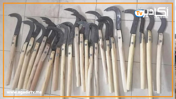 وتشير الأبحاث والتحريات المنجزة إلى أن هذه السواطير المحجوزة تمت صناعتها بشكل تقليدي عند شخص يمتهن الحدادة بمنطقة قروية بضواحي أولاد تايمة، وأنها كانت موجهة إلى داخل الحي الجامعي بغرض استعمالها في ارتكاب جنايات وجنح ضد الأشخاص.