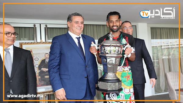 كما سلم رئيس الحكومة لقب الكأس لعميد شباب المحمدية المتوج بلقب كأس العرش لكرة القدم داخل القاعة.