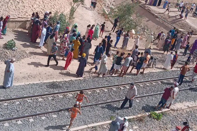 لا يوجد بها سياج عازل او جدار لمنع الساكنة المحيطة بها من المرور فوق سكة القطار.