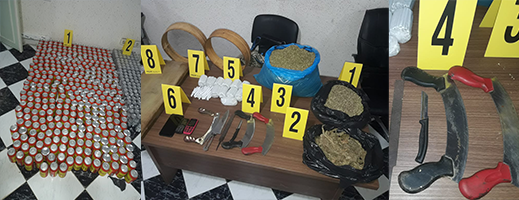 هذا، وقد تم الحجز على ما يقارب 8 كيلوغرامات من مخدر الكيف، بالإضافة إلى مجموعة من المعدات التي يتم استخدامها في نشاطهم الإجرامي.