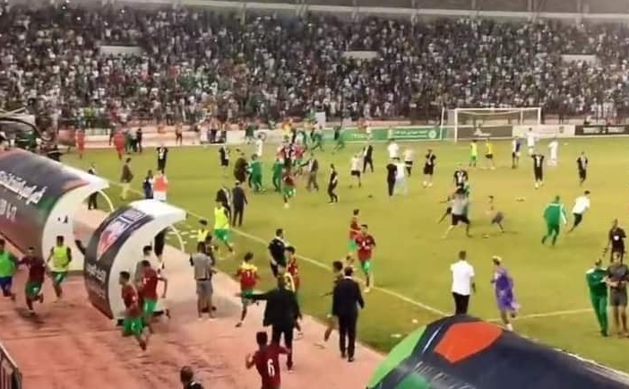 وحاول لاعبو المغرب الدفاع عن زميلهم “طه”، إلا أنهم وفور وصولهم تعرضوا هم الآخرون لاعتداءات مختلفة، في غياب تام للروح الرياضية.