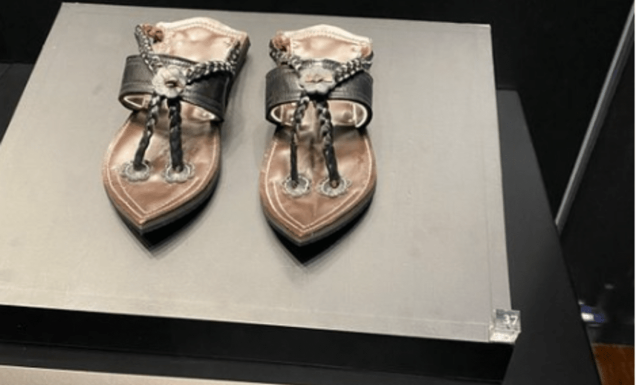 أبرز معرض “الهجرة على خُطى الرسول محمد”، بمركز الملك عبد العزيز الثقافي العالمي في السعودية “إثراء”، نسخة ورسم من حذاء النبي.