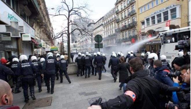 وتم اغلاق محطات مترو وشوارع للحد من الازدحام. وأدان رئيس بلدية بروكسل فيليب كلوز عبر تويتر بأشد العبارات الأحداث التي وقعت. وأضاف “أمرت الشرطة بتنفيذ اعتقالات إدارية بحق مثيري الشغب”.