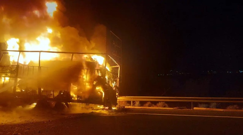 وأضافت أنه لحسن الحظ لم يخلف الحادث خسائر بشرية في حين سجلت خسائر مادية كبيرة بعد أن التهمت النيران الشاحنة بالكامل.