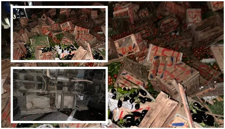 وأفادت المصادر بأن الحادث أدى أيضًا إلى اختناق مروري كبير في المنطقة، وخسائر مادية كبيرة بسبب ضياع كمية كبيرة من الخضر، وخاصة الطماطم والباذنجان، التي كانت على متن الشاحنتين.