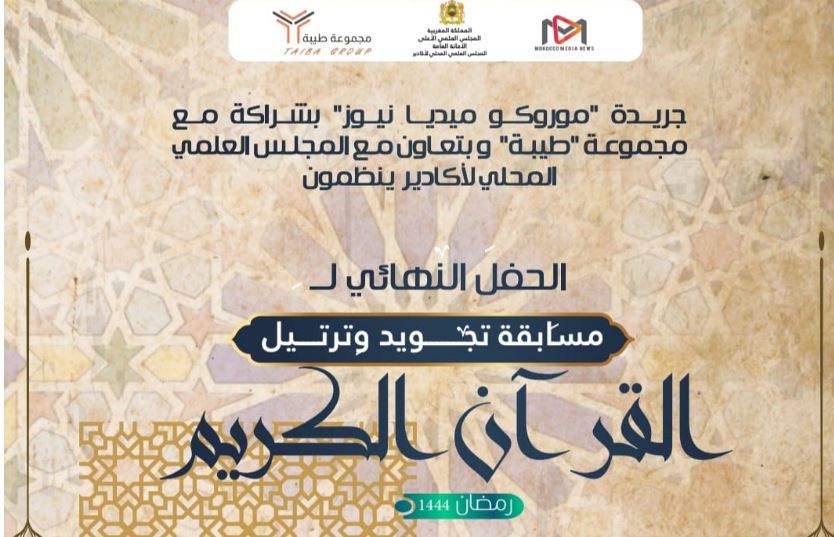 تنظم مؤسسة “موروكو ميديا نيوز” بالتعاون مع مجموعة “طيبة” والمجلس العلمي المحلي لأكادير الحفل الختامي لمسابقة تجويد القرآن الكريم لتلاميذ المؤسسات التعليمية في نسختها الثانية.