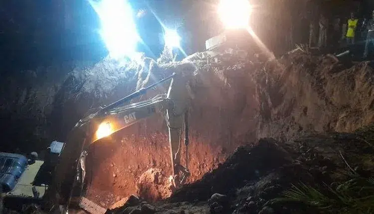 واستمرت أعمال الحفر لأكثر من 9 ساعات، لكنها تعطلت مرارا بسبب انهيارات جديدة للأتربة. وبذلت فرق الإنقاذ جهودا كبيرة لإزالة الأتربة المنهارة وتوسيع مكان الحفر يدويا، قصد الوصول إلى المحتجز.