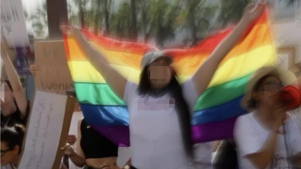 وانتشرت على فيسبوك صور وفيديوهات تظهر إحدى المشاركات في الوقفة وهي تحمل علم “المم”، الذي يرمز إلى المثلية الجنسية.