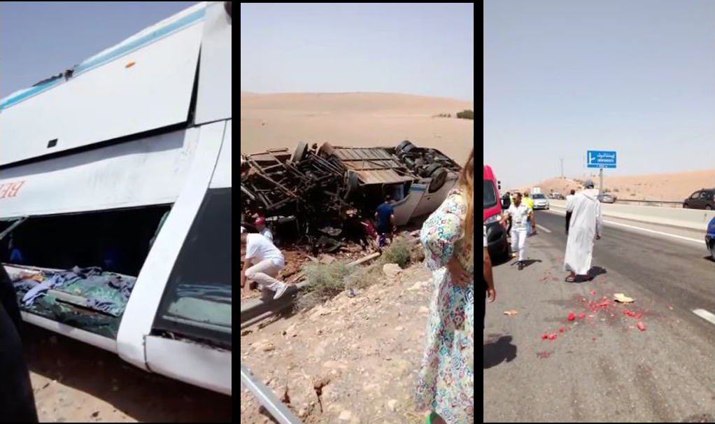 وتجدر الإشارة إلى أن الحافلة كانت تسير من اكادير نحو مراكش، قبل أن تتعرض للانقلاب الذي دفع بالمصالح المختصة والسلطات المحلية إلى التدخل العاجل لإنقاذ المصابين.