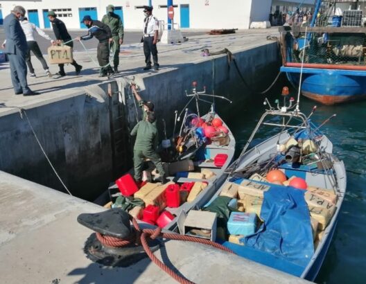 أفادت مصادر مطلعة أن عملية أمنية نفذها الدرك الحربي بأكادير أسفرت عن إحباط تهريب كمية كبيرة من المخدرات تزيد عن طن و 200 كيلوغرام على متن قارب يعود لشخصية نافذة.