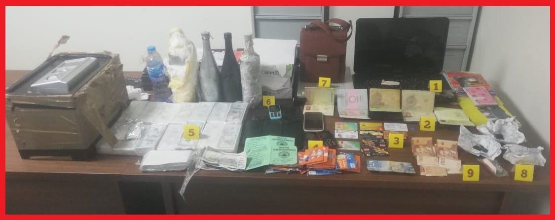 وأفاد المصدر أنه تم خلال تفتيش منزل يستخدمه المتهمان بسلا، ضبط جوازات سفر مزورة وبطاقات هوية وبنكية باسماء مستعارة، إضافة إلى شرائح هاتفية وهواتف محمولة وحاسوب محمول يستخدم في ارتكاب جرائمهما، كما تم ضبط مبلغ مالي بالعملة المغربية يعتقد أنه ناتج عن هذا النشاط الإجرامي، إلى جانب معدات مكتبية ومواد كيميائية وأوراق نقدية أجنبية مزورة تستخدم في عمليات النصب والخداع.