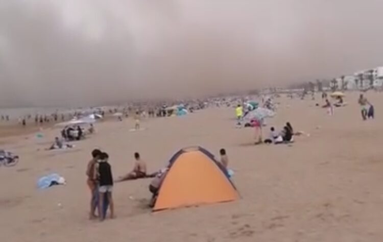 شهد شاطئ أكادير ظهر اليوم الخميس 10 غشت الجاري عاصفة عنيفة محملة برياح وغبار شديدين.
