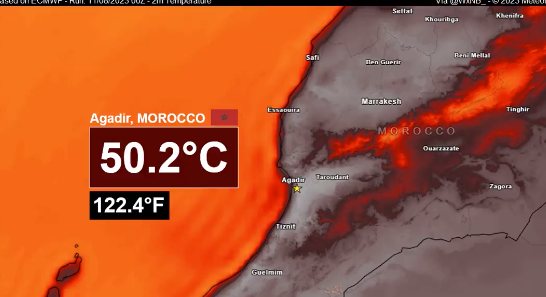 وأشار إلى أنه “لأول مرة في المغرب تتجاوز درجة الحرارة المسجلة عتبة 50 درجة مئوية”.