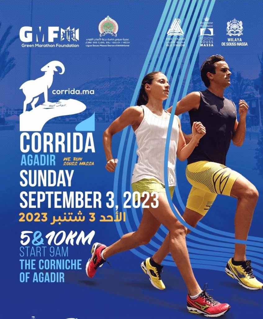 في إطار تظاهرة رياضية دولية، تستضيف مدينة أكادير سباق الطريق (Corrida Agadir) يوم الأحد 03 شتنبر 2023، والذي يشمل مسافتين هما 5 و10 كيلومترات. ينظم هذا السباق مؤسسة “الماراطون الأخضر” بالتعاون مع عدة شركاء مؤسساتيين، من بينهم عصبة سوس ماسة لألعاب القوى وولاية جهة سوس ماسة ومجلسها وجماعة أكادير.