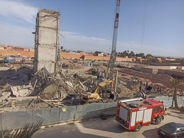 وتوجهت عناصر الوقاية المدنية إلى مكان الحادث بعد تلقيها الإنذار، وسط تحرك أمني كبير من جانب جميع السلطات، وتجري عمليات الإنقاذ لإخراج عامل ما زال عالقا تحت الركام.