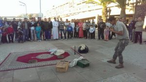 الفضاء، الذي يتم افتتاحه للمرة الثانية أمام ممتهني فنون الحلقة والمسرح، ومروضي الافاعي، والفنانين الاستعراضيين، بعد أن كانت ساحة ولي العهد قد شهدت مثل هذه الأنشطة الترفيهية بداية الثمانينات، شد انتباه المارة والسياح الذين حجوا بكثافة لمعاينة العروض التقليدية وسهرة الافتتاح التي قامت بتنشيطها فرقة اسمكان.