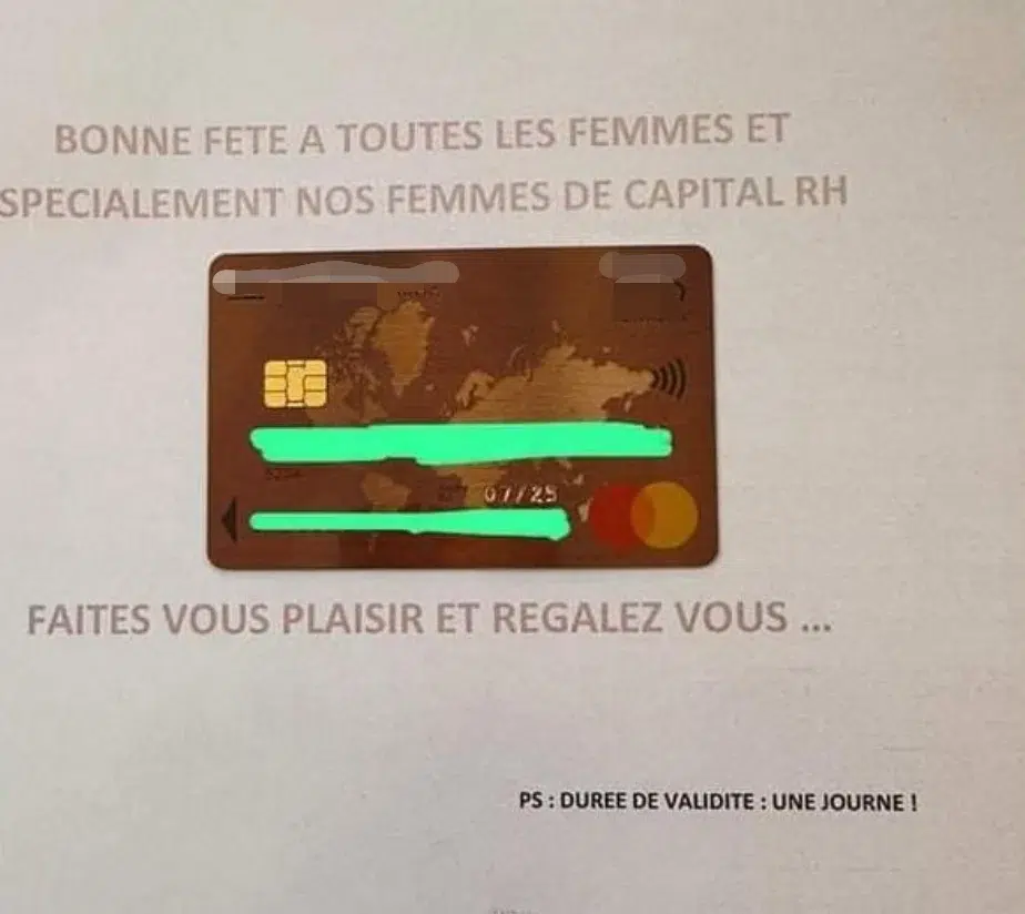 في مبادرة لافتة، قامت شركة مغربية بمنح موظفاتها بطاقات بنكية خاصة بمناسبة يوم المرأة العالمي، صالحة للاستخدام ليوم واحد فقط، تتيح لهن سحب أي مبلغ يخترنه حتى نهاية يوم 8 مارس.