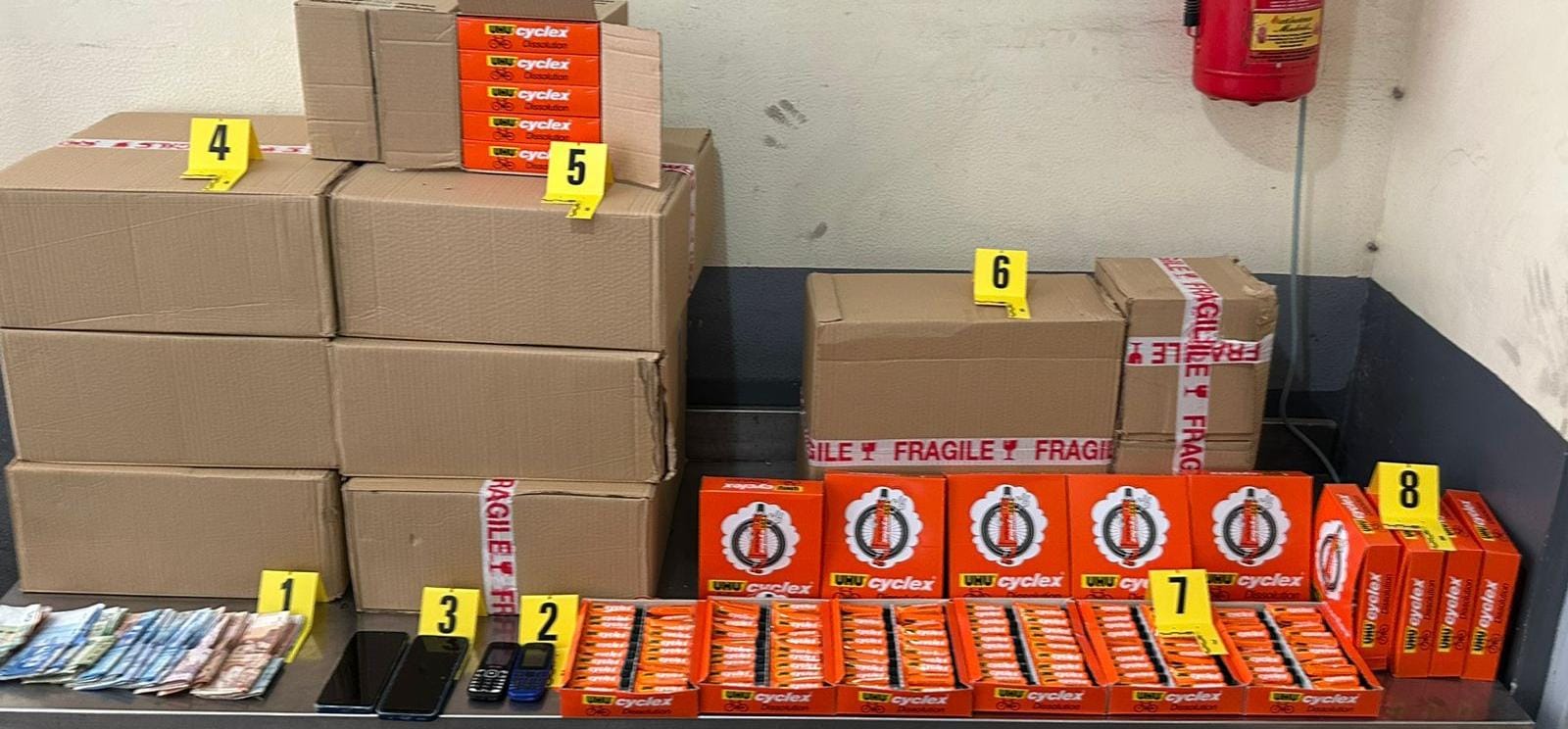 و أسفرت إجراءات الضبط والتفتيش عن حجز 6800 عبوة من مادة اللصاق الموجهة لاستخدامها خارج إطارها الأصلي، بالإضافة إلى مبلغ مالي مهم من عائدات الاتجار في المخدرات والمؤثرات العقلية.