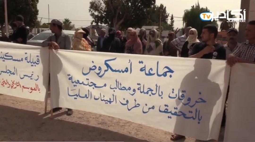 وفي سياق الاحتجاج، كتب المحتجون على إحدى اللافتات: “جماعة أمسكروض خروقات بالجملة ومطالب مجتمعية بالتحقيق من طرف الهيئات العليا”، مؤكدين على ضرورة فتح تحقيق شامل في جميع التجاوزات والخروقات التي يتعرضون لها.