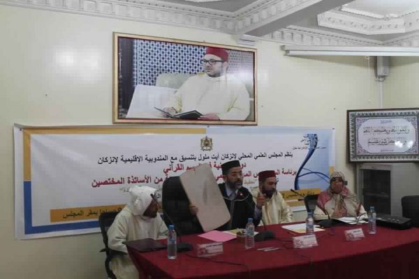 أشرف المجلس العلمي المحلي لإنزكان أيت ملول على تنظيم دورة تكوينية في الرسم القرآني التي أقيمت صباح يوم الخميس 11 فبراير 2016 بمقر المجلس، لفائدة محفظات المراكز القرآنية، تحت شعار: تحفيظ القرآن الكريم على الألواح موروث أصيل وعناية ممتدة.