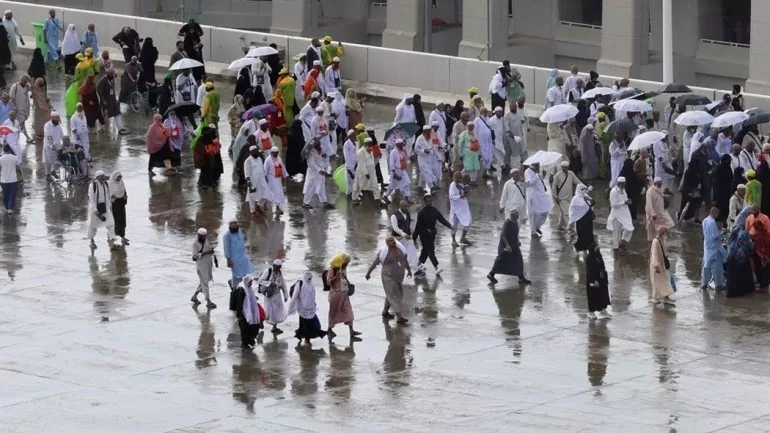 رغم تسجيل درجات حرارة قياسية.. أمطار غزيرة تتهاطل على المشاعر المقدسة