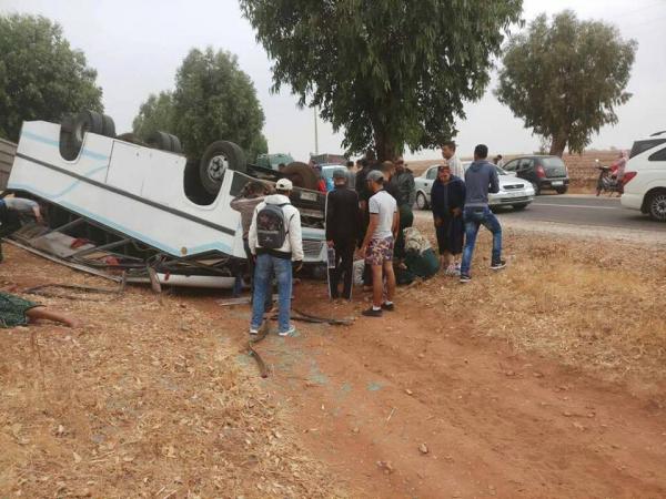 حادث انقلاب سيارة نقل مدرسي يسفر عن إصابة 23 تلميذاً