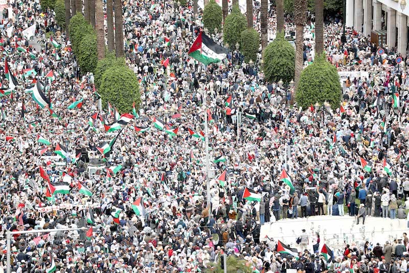 مسيرة مغربية حاشدة في الرباط ضد جرائم الاحتلال الإسرائيلي في غزة